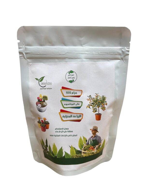 سماد بوتاسيوم خاص بالزراعة المنزلية 100 جرام | لتقوية السيقان وتحسين جودة الثمار | سماد سريع الذوبان للزراعة المنزلية والحديقة والبلكونة – مشاتل المنوفية