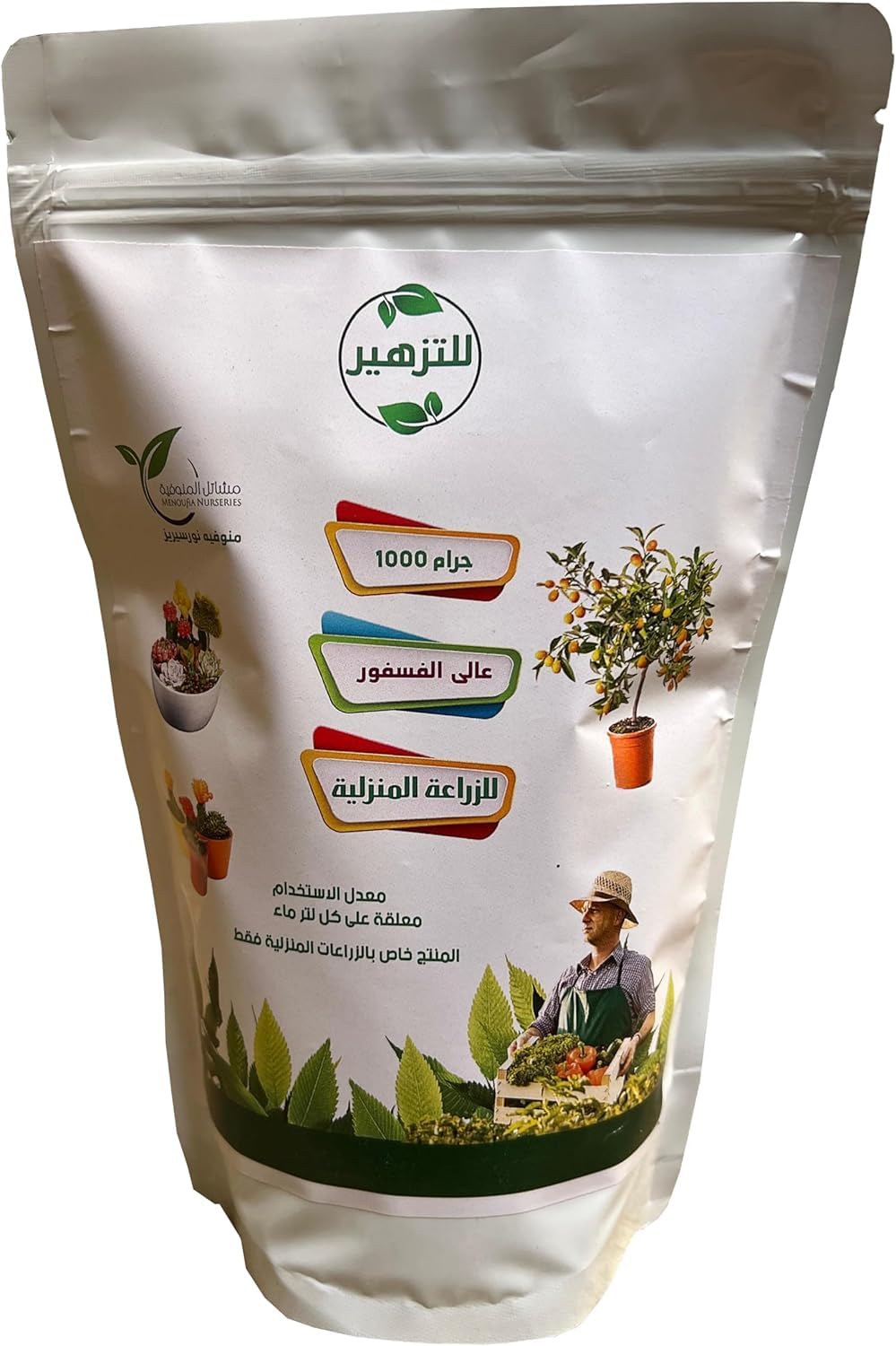 سماد عالي الفسفور مركز 1 كجم خاص بالزراعة المنزلية | خليط خاص بمشاتل المنوفية لتحفيز الإزهار وتقوية الجذور | مثالي للبلكونة والحديقة والأسطح
