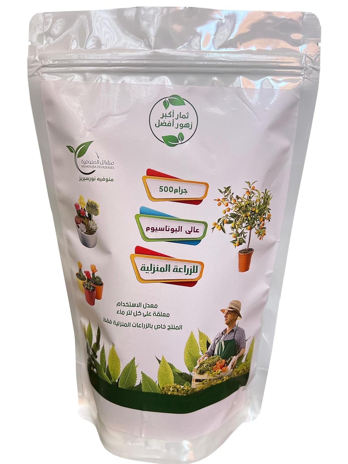 سماد بوتاسيوم خاص بالزراعة المنزلية ميزان 1/2 نصف كجم | لتقوية السيقان وتحسين جودة الثمار | سماد سريع الذوبان للزراعة المنزلية والحديقة والبلكونة – مشاتل المنوفية